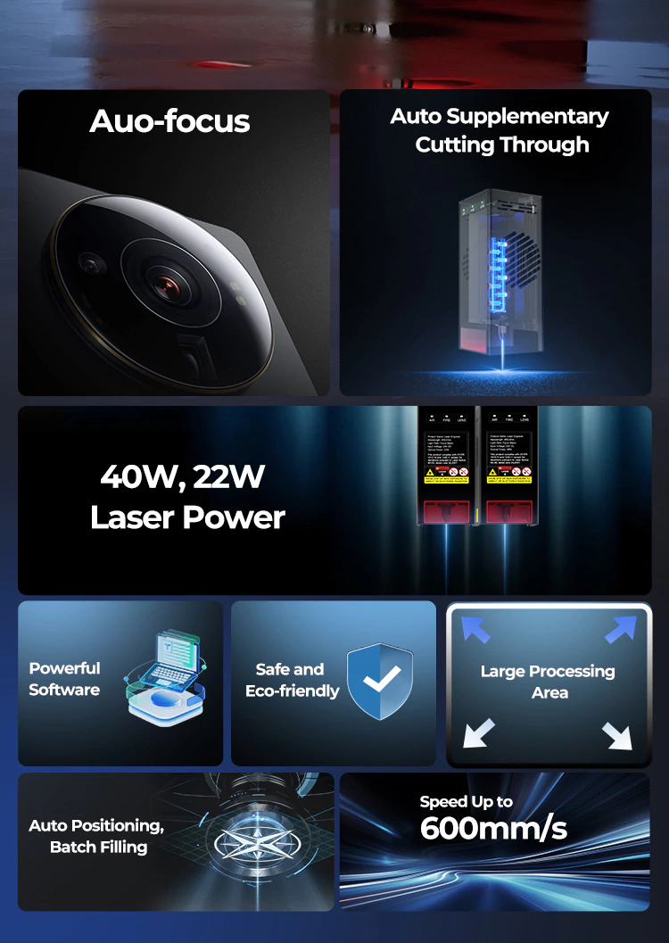 La Creality Falcon 2 Pro 22 W combina precisión y productividad para grabado y corte láser. Incorpora cámara integrada para alineación visual, enfoque automático y sensores de seguridad que aseguran un flujo de trabajo confiable y repetible. Es una solución sólida para makers, talleres y producción por lotes.