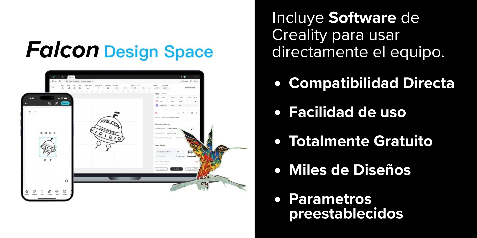 | Software compatible | LightBurn, LaserGRBL y Creality Design Space |
