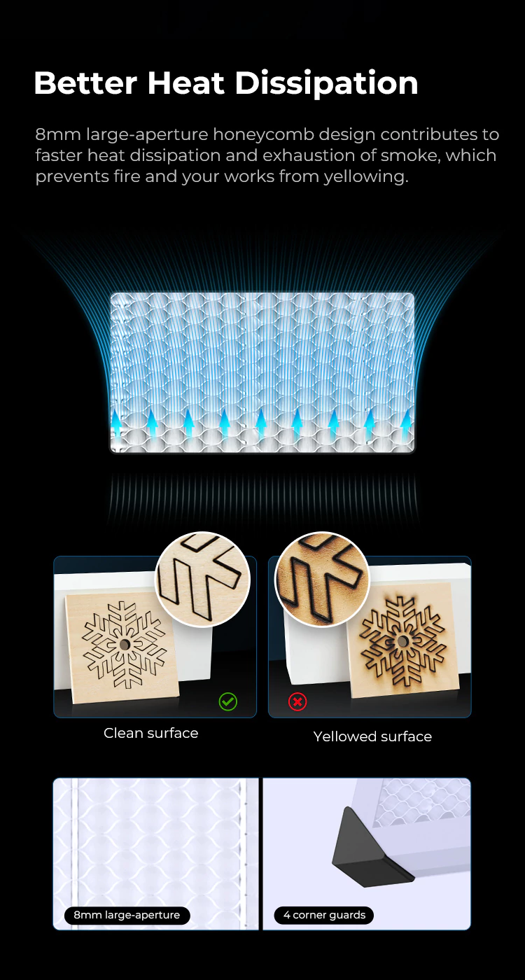 El Honeycomb Creality Original 50×50 cm es el accesorio esencial para quienes trabajan con cortadoras o grabadoras láser. Gracias a su estructura tipo panal, mejora la disipación del calor, evita quemaduras indeseadas y protege cualquier superficie de trabajo. Incluye una lámina metálica inferior que agrega mayor seguridad, estabilidad y eficiencia durante el corte.