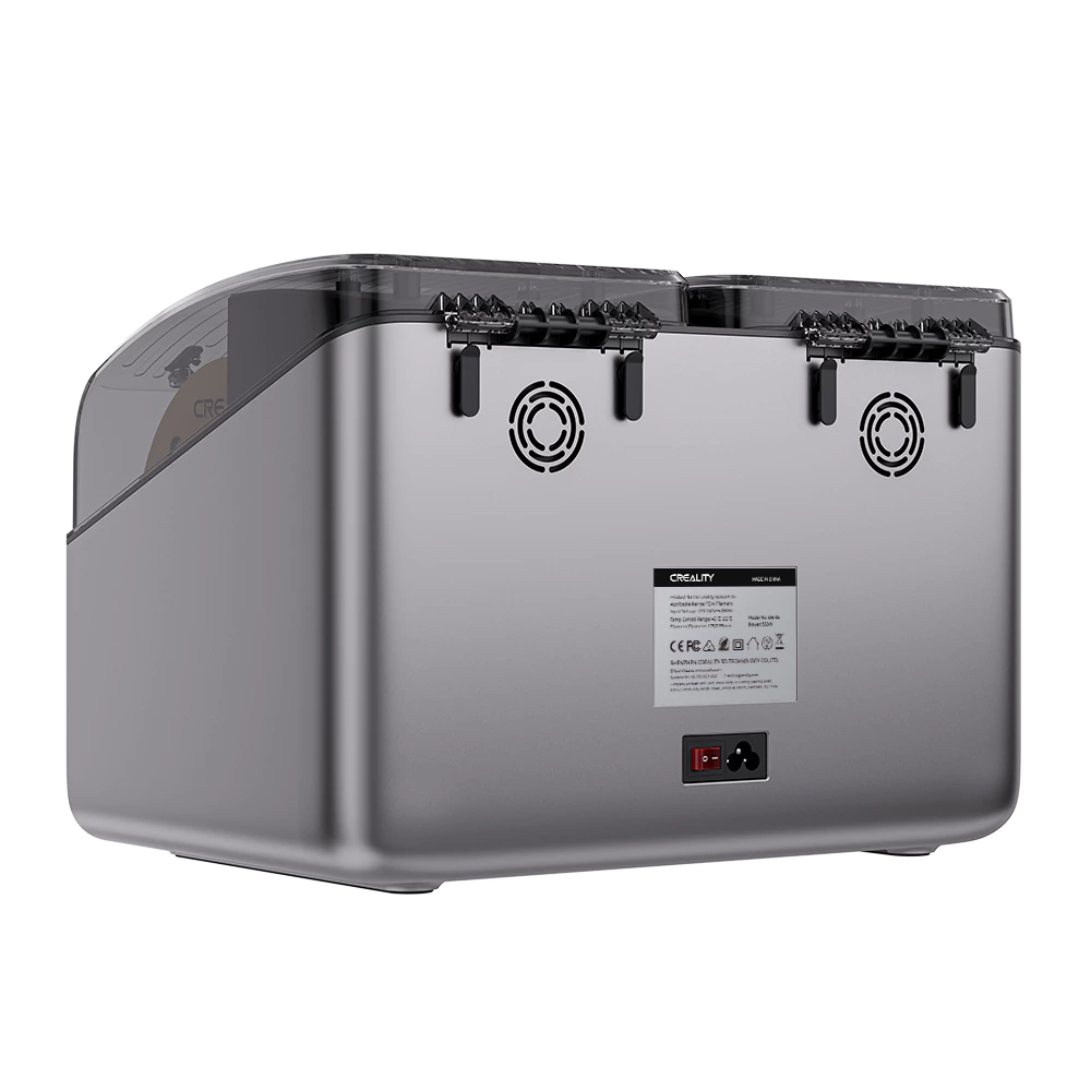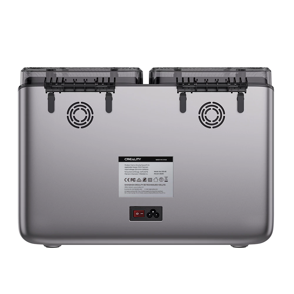 El Creality Filament Dry Space PI X4 es un secador de filamento de alta eficiencia diseñado para mejorar notablemente la calidad de tus impresiones. Su sistema de doble cámara independiente permite secar filamentos de manera uniforme, evitando humedad, burbujas y fallos comunes en materiales sensibles.