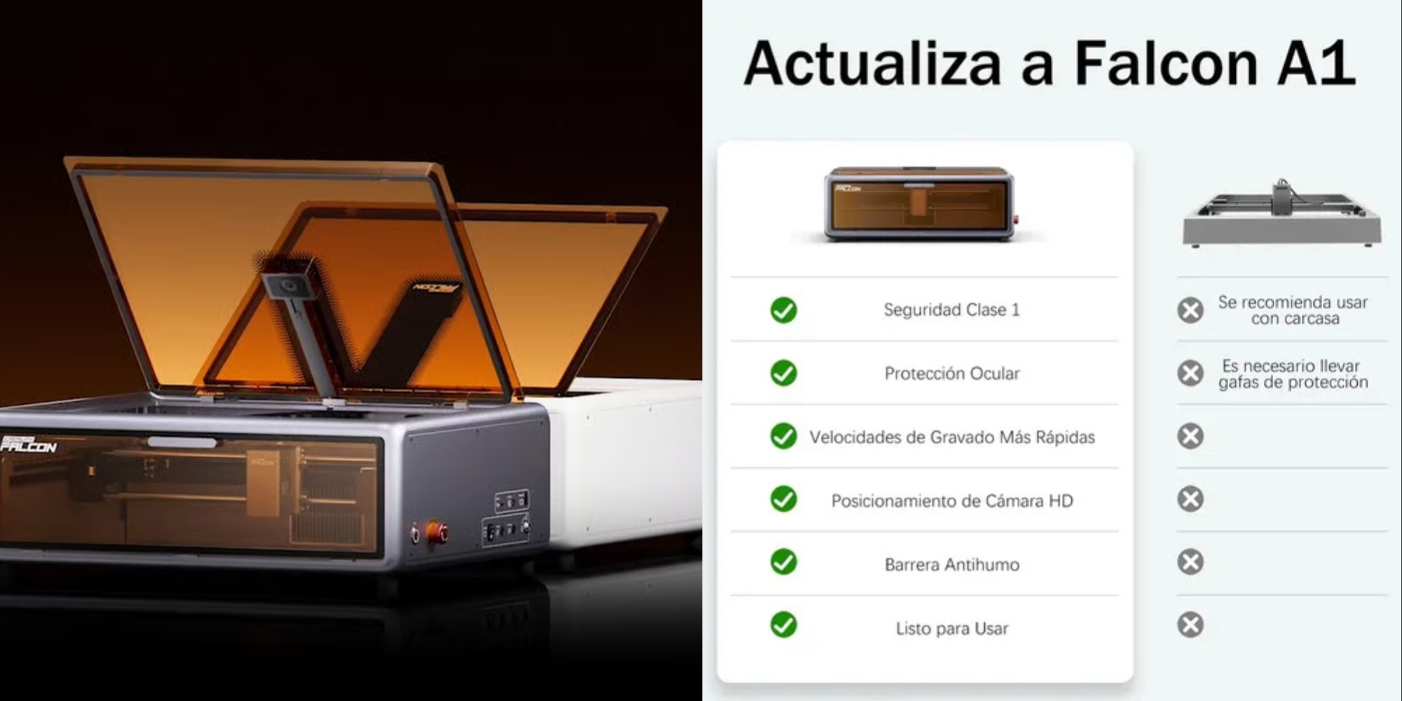 El Creality Falcon A1 es un grabador y cortador láser de escritorio totalmente cerrado, diseñado para usuarios creativos y profesionales que requieren precisión, seguridad y facilidad de uso.